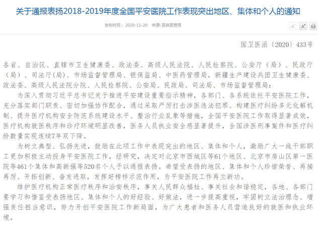 另悉,上高縣中醫(yī)院作為2018—2019年度全國(guó)平安醫(yī)院工作表現(xiàn)突出集體同時(shí)受到通報(bào)表?yè)P(yáng)。