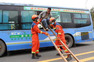 消防員營(yíng)救疏散公交車內(nèi)被困人員。韋清瑜攝