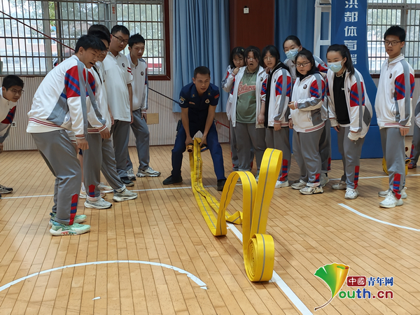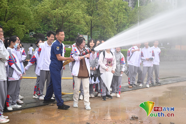 在消防官兵的帶領(lǐng)下,師生代表們分組前往學(xué)校體育館參觀體驗消防車輛和裝備。穿上消防戰(zhàn)斗服,戴上消防頭盔,拋一次消防水帶,噴一次消防水槍成為了廣受師生們青睞的“打卡”體驗活動。除了各類體驗項目,消防官兵還開展了消防知識宣傳。在豐富多樣的“沉浸式”體驗中,同學(xué)們認(rèn)識了不同功能的消防車輛、專業(yè)的救生器械,學(xué)習(xí)了消防安全知識。(記者 秦亮)