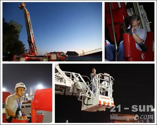 為保證天安門(mén)廣場(chǎng)附近的交通順暢,云梯車(chē)每天早晨凌晨5點(diǎn)就不得不收班,駛離作業(yè)現(xiàn)場(chǎng)。偶然一次,操作員趙強(qiáng)在完成當(dāng)天的工作任務(wù)后,幸運(yùn)地在工作斗內(nèi)觀(guān)看了升旗儀式。回到住處,他十分興奮地跟同事們說(shuō)起這件事,“來(lái)了天安門(mén)這么多次,都沒(méi)看過(guò)升旗。今天真是運(yùn)氣好!我在工作斗里看完了整個(gè)升旗儀式”!(本文來(lái)自中聯(lián)重科)